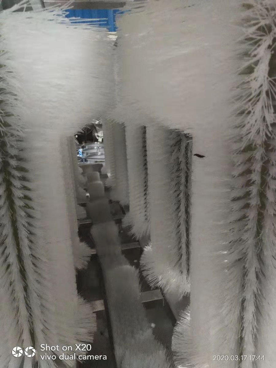 9.最新设计直线式桶外毛刷清洗机,进出桶平稳。采用固定及旋转多组毛刷,可彻底清洗桶身、桶底和桶肩。此刷桶机效率高,故障低的特点